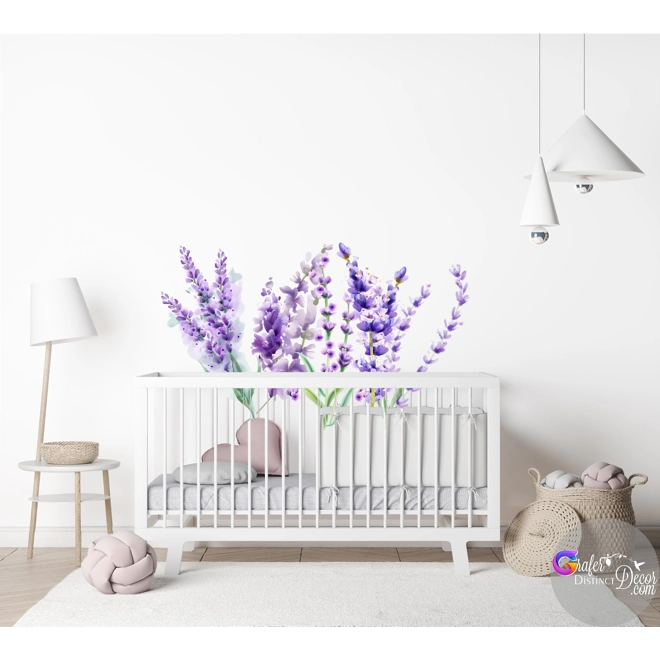 Lavender flowers decal, Floral wall decal, blossom Lavender decal, Watercolor Flowers, Violet flower wallpaper, , Nursery purple wall decal