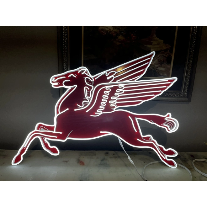 Mobil Neon Pegasus Sign, Neon Mobil Gas Station Sign, Rep Antique Vintage, Garage Décor, Aluminum Pe
